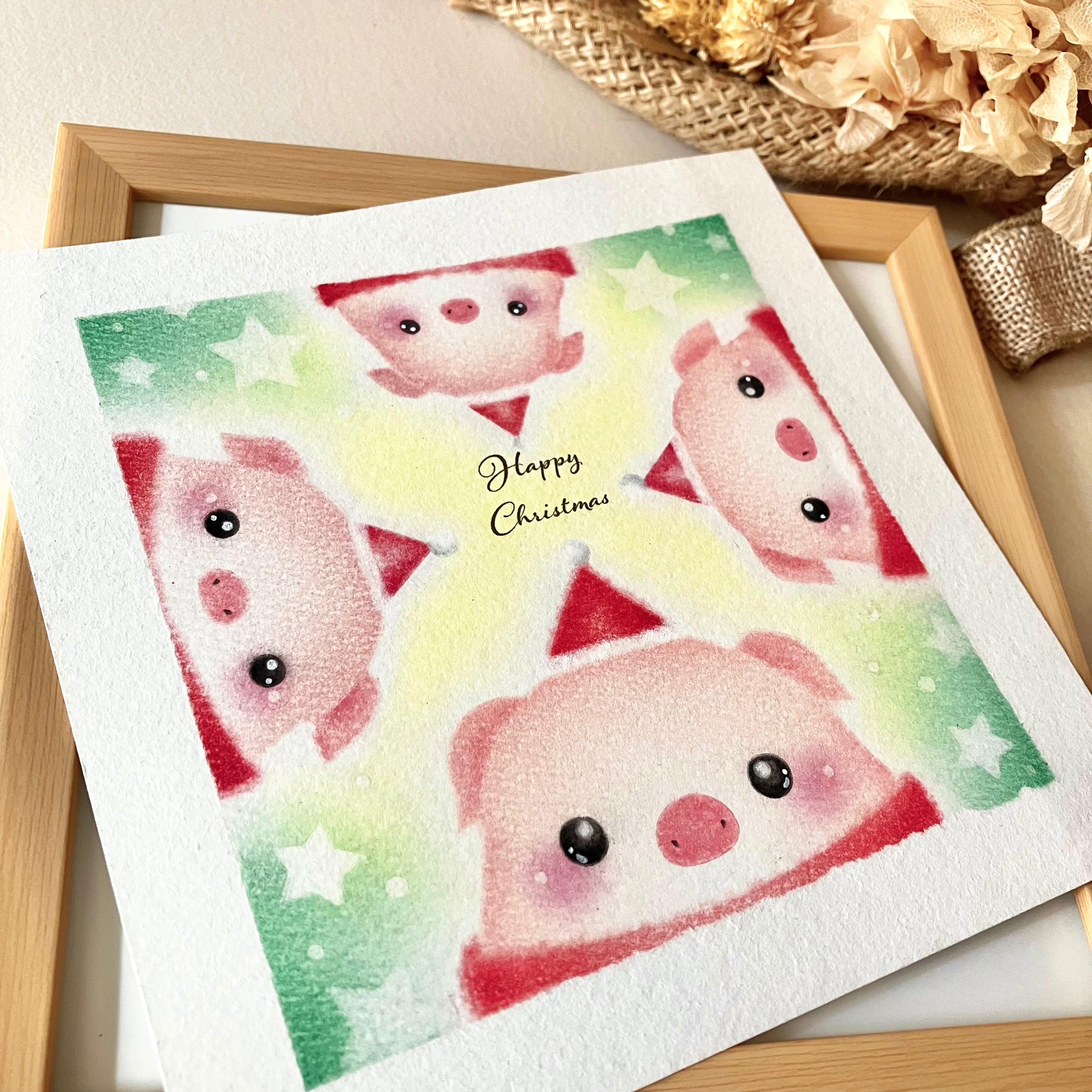 キュートなぶたさん親子のクリスマスパステルアート。