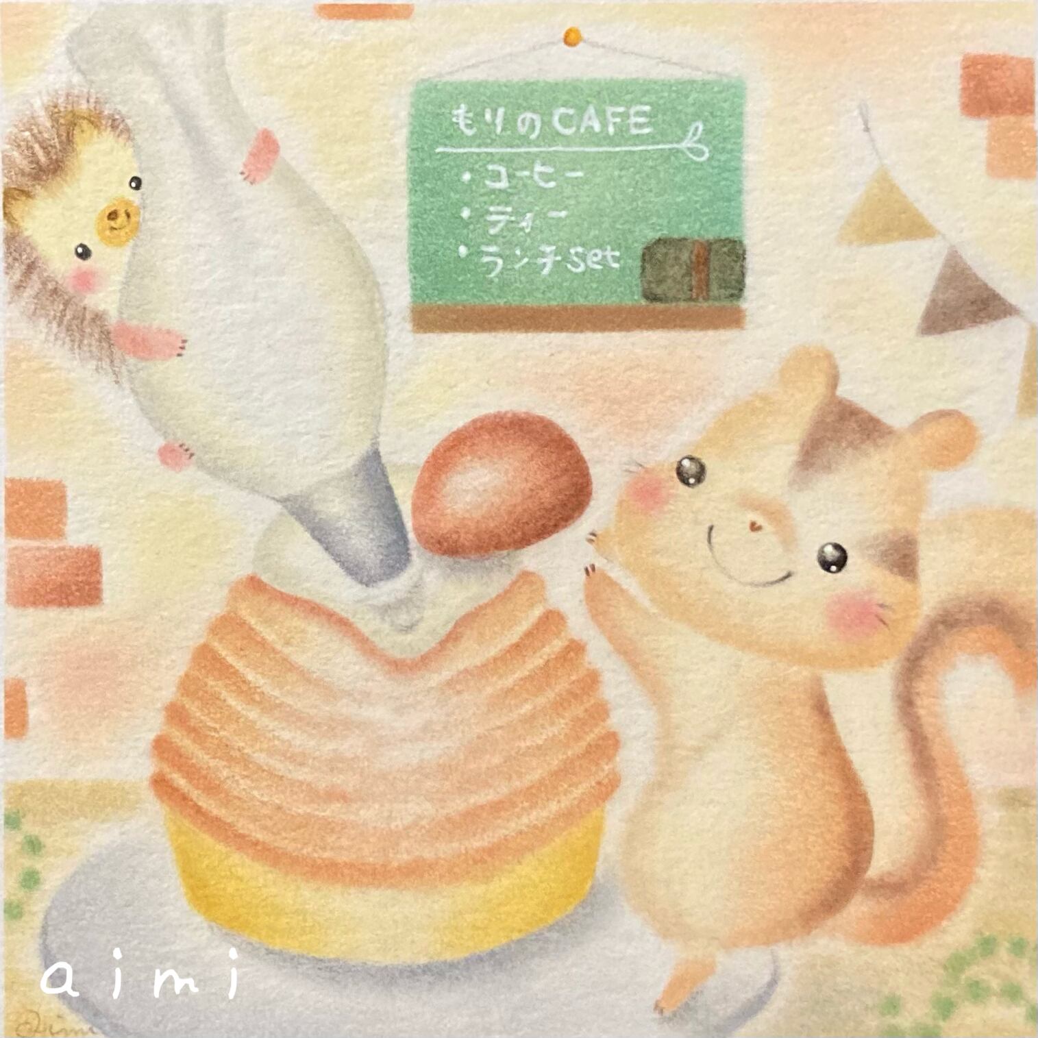 2019年aimrオリジナルカレンダー「もりのかふぇ」の為に描きおろした原画作品です。